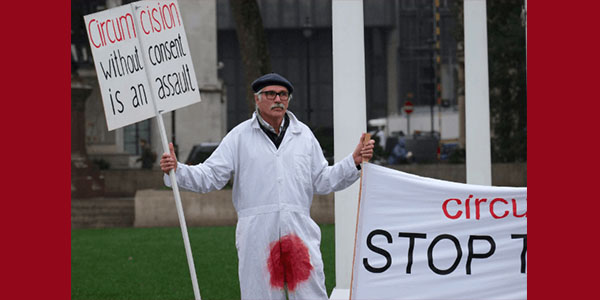 Activists Protest Against Circumcision in Blood-Stained Jumpsuits “It’s a Baby’s Right to Choose”